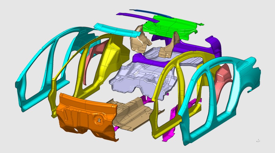描述:4座乘用車的白車身,整體車身由28個(gè)部件構(gòu)成,總質(zhì)量?jī)H為95KG。汽車車身制造采用了多種工藝制備,其中HP-RTM工藝(高壓注射成型)及工裝設(shè)備,生產(chǎn)效率達(dá)到5min/件,織物拉擠生產(chǎn)的承載梁結(jié)構(gòu),強(qiáng)度高,產(chǎn)品效率高,成本低,可滿足汽車工業(yè)化生產(chǎn)需求。